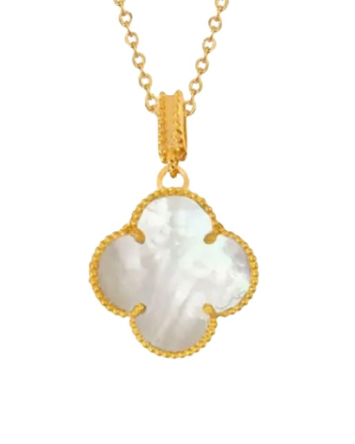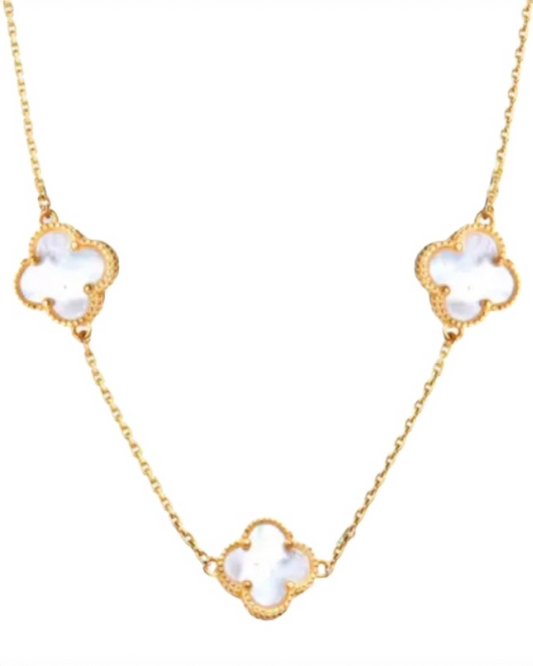 Halskette Gelbgold 18k – Shabdar-e Sefid Panj Ganeh (Weisses Kleeblatt, Fünffach)